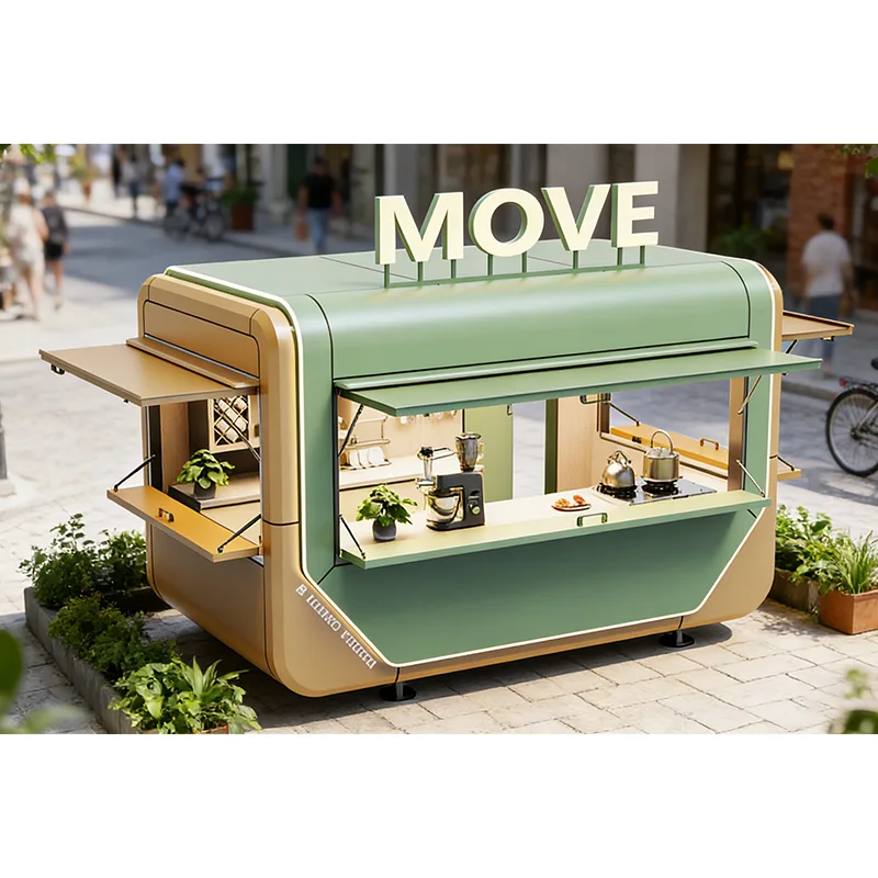 Soláthraíonn an méid sonraíochtaí iolracha de 3-8m le roghnú as, ar féidir iad a shaincheapadh de réir na seirbhíse scála. Glacann an taobh istigh leagan amach criosaithe daonnaithe, ag roinnt go réasúnta an limistéar cócaireachta, an limistéar ullmhúcháin, an limistéar stórála, agus an limistéar díolacháin chun an éifeachtúlacht seachadta bia a uasmhéadú, ag oiriúnú do riachtanais seirbhísí lónadóireachta grúpa miondíola agus ar scála mór. Leis an meascán de chláir oibre fillte agus leathnaithe, scáthláin ghrian agus bháisteach, agus fuinneoga díolacháin deannach-dhíonach cuireann sé san áireamh inoiriúnaitheacht timpeallachtaí lasmuigh agus áisiúlacht na seirbhíse. Tacaíonn an chuma le péintéireacht branda saincheaptha, LOGO, agus boscaí solais fógraíochta, feabhas a chur ar aitheantas branda. I gcomparáid le hionaid lónadóireachta seasta, tá costais infheistíochta níos ísle agus solúbthacht imscartha níos airde aige, féadann sé freagairt go tapa ar riachtanais lónadóireachta i gcásanna éagsúla, agus is trealamh ilúsáideach é do sheirbhísí lónadóireachta soghluaiste.
