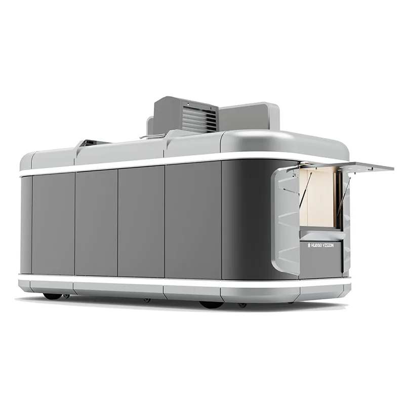 Bunaithe ar chassis tráchtála tiomnaithe, tá an táirge feistithe le hinneall ardfheidhmíochta agus córas tarchurtha cobhsaí. Is féidir leis taisteal go huathoibríoch gan tarraingthe breise, agus tá an oibríocht áisiúil. Is féidir é a oiriúnú go héasca do bhóithre uirbeacha, cosáin limistéir radhairc, agus páirceanna gníomhaíochta. Úsáideann an comhlacht plátaí cruach galbhán ard-neart agus boird inslithe grád bia, a ndearnadh cóireáil agus séalaithe frith-meirge agus frith-chreimeadh uile-bhabhta, ag cur san áireamh marthanacht, insliú, friotaíocht uisce. Tacaíonn an chuma le saincheapadh pearsantaithe lán-toise, rud a cheadaíonn péint comhlacht, LOGO branda, boscaí solais leabaithe, agus scáthanna gréine fillte a shaincheapadh, rud a mheallann agus a mheallann trácht ní hamháin ach a chuireann béim ar íomhá an bhranda freisin. Tá an taobh istigh go hiomlán déanta as 304 cruach dhosmálta, le cuntar oibriúcháin agus urlár frith-sciortha, atá glan agus resistant a stains ola, agus a chomhlíonann caighdeáin sláinte agus comhlíonta an tionscail lónadóireachta.